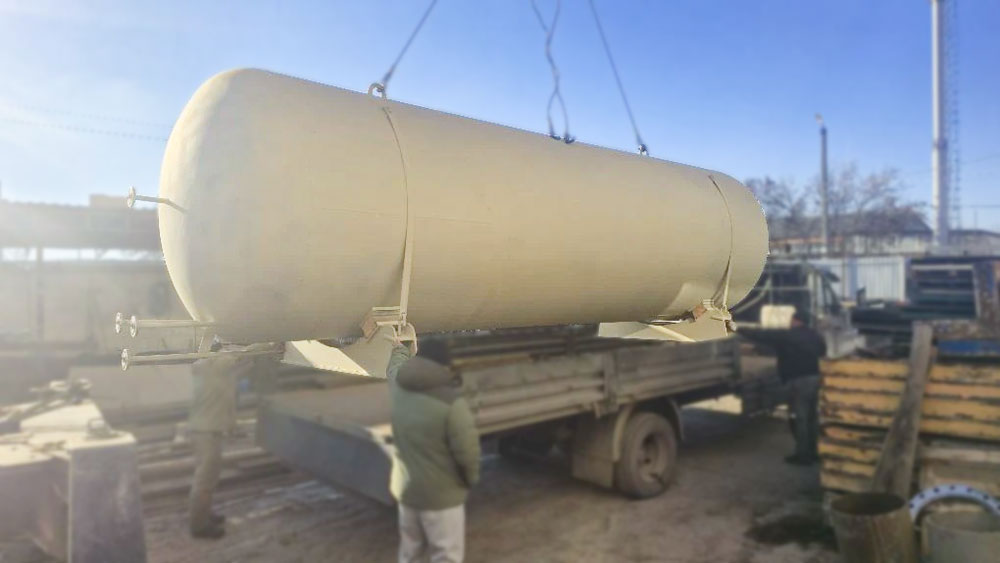 Емкость представляет собой герметичный сосуд цилиндрической формы, рассчитанный на работу под давлением. Исполнение может быть вертикальным или горизонтальным — выбор зависит от требуемого объема и условий размещения на площадке.